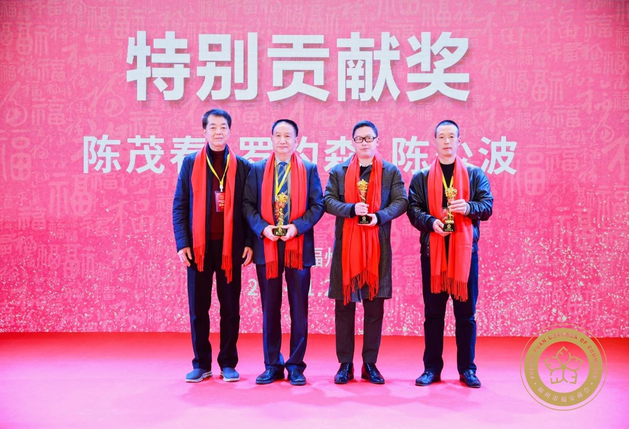 随后,与会领导向新当选的副会长、理事、优秀会员授牌,与会领导上台颁发了热心助力奖、慈善公益奖,行业先锋奖、特别贡献奖。省委原副秘书长兼办公厅主任李育兴为陈茂春董事长颁发了特别贡献奖。