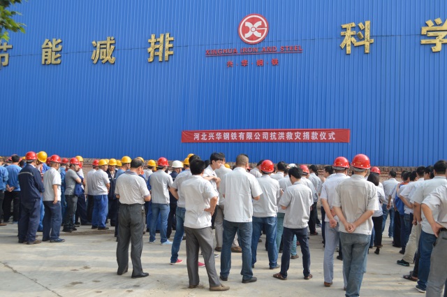 当天上午,兴华钢铁公司厂区内举行抗洪救灾捐款仪式,总经理付新岗、经营副总李福忠、行政副总高振伟及公司各厂部管理干部、职工200多人参加了现场捐赠仪式,帮助受灾群众战胜灾难,重建家园。