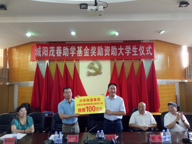 金秋八月,惠风送暖。8月26日上午,一年一度的“茂春助学基金”2016年奖励资助大学生和城阳镇环镇公路拓宽改造工程基金捐助仪式在福安市城阳镇举行,捐款43万元,奖励、资助130名应届大学新生,捐款100万元用于城阳镇环镇公路拓宽改造工程。福安市政协副主席饶兰芳、市关工委主任林青、市扶贫开发协会会长陈平玉、城阳镇党委书记陈柏崇、兴华财富集团党委书记、董事长陈茂春、福安市教育局、团市委、市妇联、城阳镇党委政府等单位领导以及学生和家长代表参加仪式。助学仪式由城阳镇党委书记陈柏崇主持。