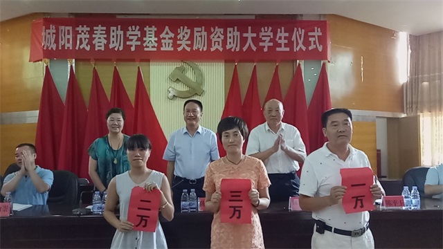 金秋助学施恩惠,情暖千名学子心。为奖励成绩优秀大学生和帮助部分家庭困难学生顺利跨入大学校门,“茂春助学基金”情系莘莘学子,又一次伸出了温暖的双手。2016年,该基金奖励本一、本二大学生110人,全国重点大学生、研究生19人;资助困难大学生21人,资助老区中学、城阳中心小学,奖励、资助金额达43万元。在助学款发放仪式上,受助的130名困大学新生庄严承诺:铭记资助者的恩德,努力完成学业,报效祖国,服务社会。