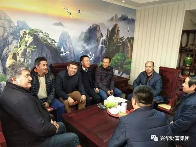2016年12月10日,西班牙地中海财富公司总经理Pablo Belmonte(巴浦洛)先生及西班牙农业科技工程师Manuel Angel Felices先生,Manuel Fermin Malagon先生,工业工程师José Antonio Morales先生,建筑工程师 José López Rejas先生、翻译伊莎贝娜女士一行6人在兴华财富集团董事长陈茂春、兴华永清地产公司总经理田昊、永清县别古庄镇人大主席张茹、辛务村支部书记张清、村长丁兆丰等陪同下,参观考察兴华财富集团在永清的农业、地产开发项目。此次参观考察,双方就兴华永清现代农业产业园项目合作方面达成初步共识。