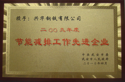 4月30日,在武安市召开的全市节能减排工作表彰大会上,我公司被武安市委、市政府授予“2009年度武安市节能减排先进企业”称号,并奖励人民币十万元整,这是我公司连续两年获此荣誉;公司员工王俊刚、吴泽明被评为2009年度武安市节能减排工作先进个人。